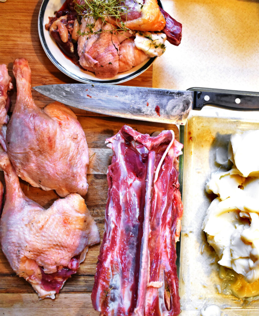 When I buy a chicken I know where it is from. When I butcher that chicken at home, I like to be alone and talk to it. It sounds creepy, isn’t it? I pay my whole attention to it, try to feel that dead body with all my senses. I think of its life and pay my respects. I am aware it lived before, and died for me to eat it. So, it is my turn now to make the most delicious dishes from it, and a lot.