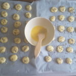 Place them on a baking tray, covered with paper. Brush them with the other, whisked egg and sprinkle with caraway seeds.